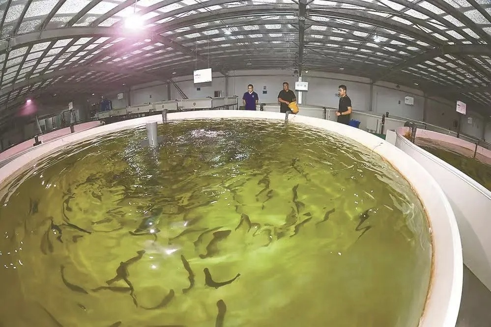 “走,一起去现场看看。”上午9时,是中国海油盐城“绿能港”LNG接收站的生产用水通过管道,放入到马路对面的滨海县陶湾海洋牧场陆上冷水鱼养殖试验基地的时间,技术员王晨浩边说话边向输水管道源头走去。基地内,只见10多个圆形养殖池里养有三文鱼、硬头鳟、鲟鱼、多宝鱼等品种,池里的水则是来自隔壁LNG接收站的生产用水。作为我国规模最大的液化天然气储备基地,中国海油盐城“绿能港”LNG储罐的建成,可释放大量冷能。“如果冷能排入大海,导致海水温度降低,会破坏周边海洋生态。”滨海港经济区管委会副主任王欢说,而如果把换热过的海水放进池子做成“鱼塘”,就实现了资源化利用。