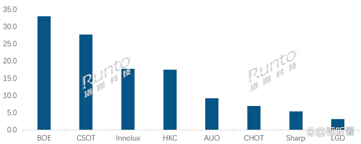 京东方继续以绝对优势领跑市场,上半年3300万片的出货量配合17.3%的同比增速,使其市场份额提升至27.4%,进一步巩固了行业霸主地位。