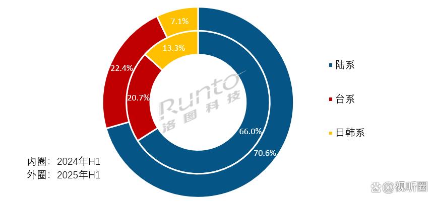 2025年上半年,中国大陆面板厂商交出了一份亮眼的成绩单。洛图科技数据显示,京东方、华星光电、惠科、彩虹光电四家大陆面板厂合计出货量达8510万片,同比增长9%,在全球市场的份额突破70%大关,达到70.6%。这一数据较去年同期提升4.6个百分点,标志着中国面板产业已完全掌握全球LCD电视面板市场的话语权。