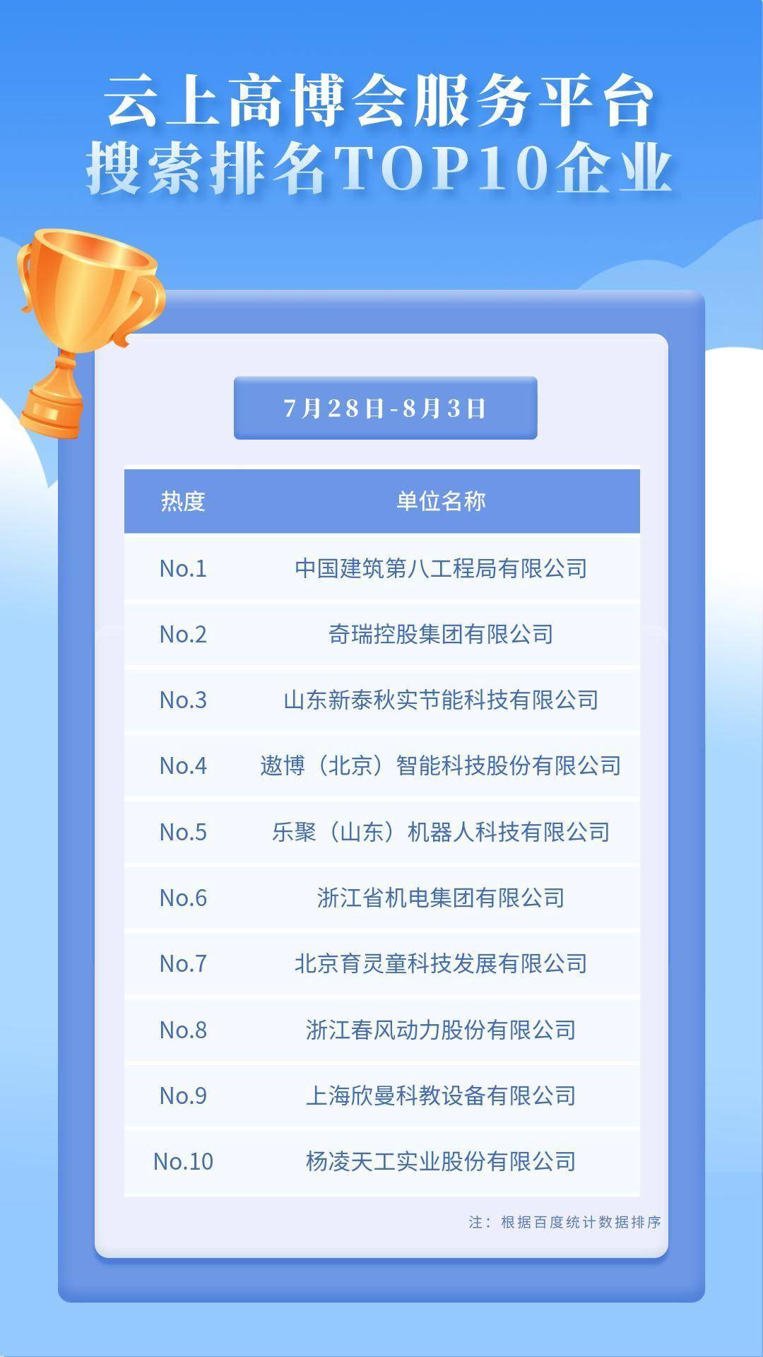 云上高博会7月末至8月初热搜高校企业TOP10榜单揭晓!