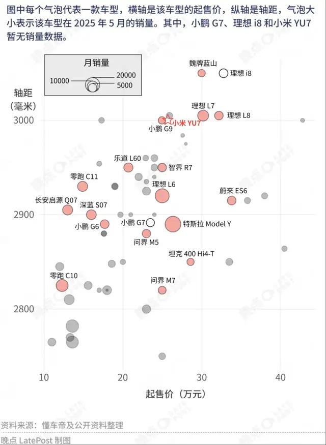小米 YU7 的售价在 25.35-32.99 万元之间,因此所有价格相近的 SUV 都可能受到波及。在 YU7 发布当天,我们曾绘制过一张竞争关系图,其中与 YU7 价格和定位高度重合的车型还包括蔚来 ES6、乐道 L60、小鹏 G7、理想 L6、智界 R7、问界 M5 和 M7、阿维塔 07、极氪 7X、智己 LS6 等。