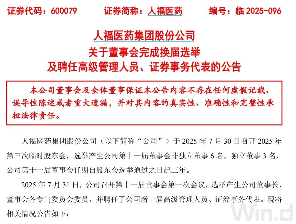 此外,招商局集团首席战略官邓伟栋被选为新一届董事会董事长,人福老蒋杜文涛担任总经理、财务负责人。