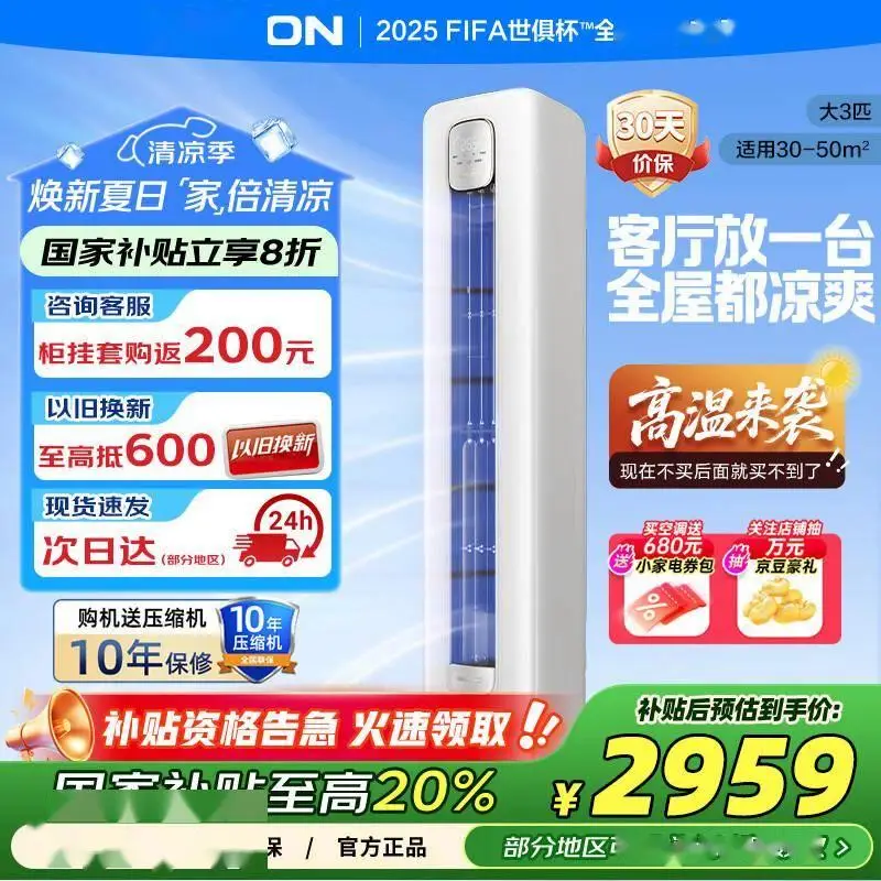 如果你家客厅超过30㎡,这款海信出品的科龙大3匹柜机就是性价比之选。新一级能效比普通机型省电15%,但制冷量高达7210W,开机3分钟就能让50㎡空间降温5℃。出风口采用高尔夫球面凹坑设计,将强风打散成柔和的“环绕风”,避免传统柜机直吹的冰冷刺痛感。特别值得一提的是它的商用级耐用性——压缩机十年包修,适合餐厅、商铺等高频使用场景