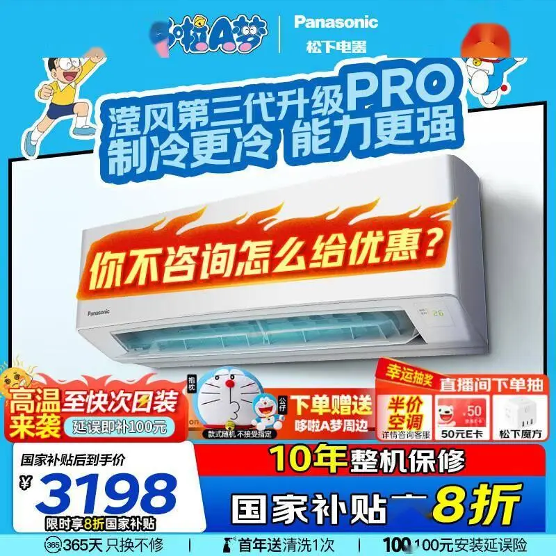 松下这款1.5匹空调搭载独家黑科技——纳诺怡除菌系统,能释放数万亿级OH自由基,分解甲醛、PM2.5等有害物质,实测对白色葡萄球菌灭活率达99%。原装压缩机配合“ECONAVI”智慧节能技术,可根据人体活动位置自动调节送风,避免能源浪费。适合对空气质量要求高的家庭,尤其是装修后需要净化甲醛的环境