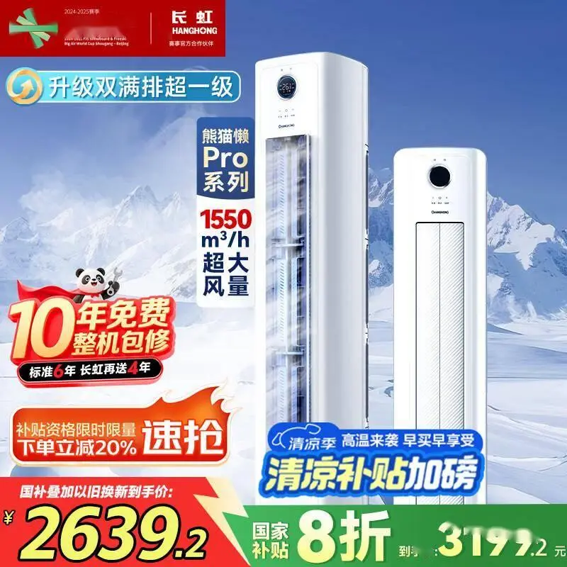 长虹这款大2匹立式空调柜机堪称“电费刺客终结者”,超一级能效搭配国家补贴政策,长期使用能省下近千元电费。其核心优势在于“熊猫懒”智能模式——通过红外感应自动调节送风角度,避免直吹头痛,特别适合有老人孩子的家庭。实测运行时噪音仅22分贝,比翻书声还轻,夜间观影也不会被干扰。专利自清洁技术能高温杀菌蒸发器,再也不用担心空调异味问题