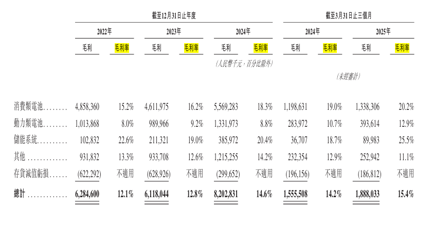 但从毛利率来看,动力电池是个吃力不讨好的业务。截至今年一季度,欣旺达在这一业务的毛利率仅为12.9%,大幅逊色于其储能的25.5%和消费电池的20.2%。
