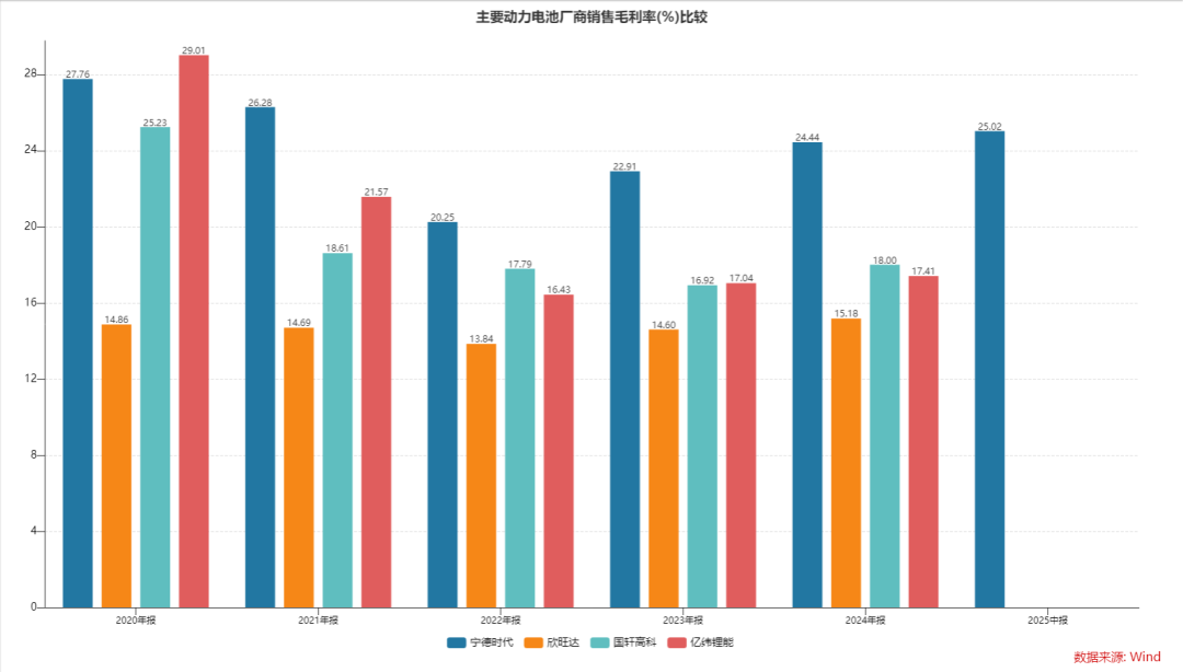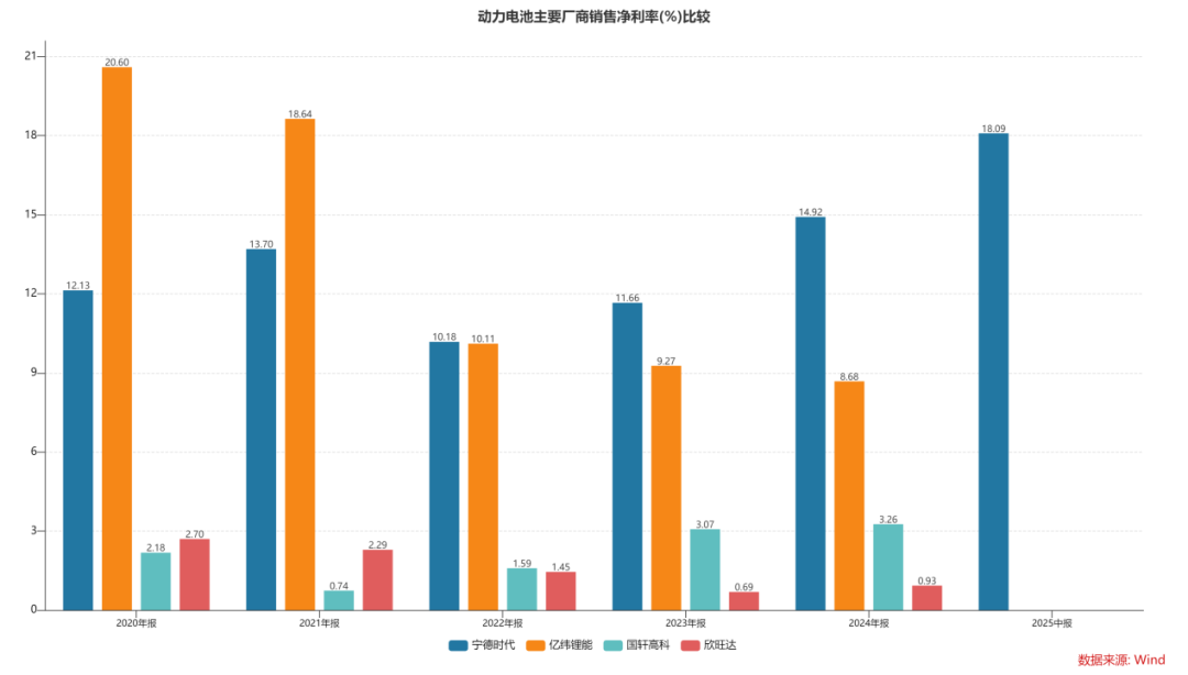 从消费电池转型而来的欣旺达,其动力电池只能凭借低价快速占领市场,而在成本相对固定的前提下售价低于同行毛利率就得承压。2024年欣旺达毛利率为15.18%低于亿纬锂能的17.4%、国轩高科的18%以及宁德时代的24.44%。