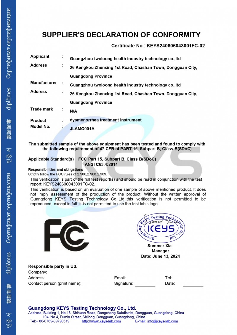 产品合规认证首款产品通过 FC 等合规检测,获得《Suppliers Declaration of Conformity》(供应商符合性声明),证书编号为 KEYSS06060401FC42,确保产品符合相关市场准入标准。