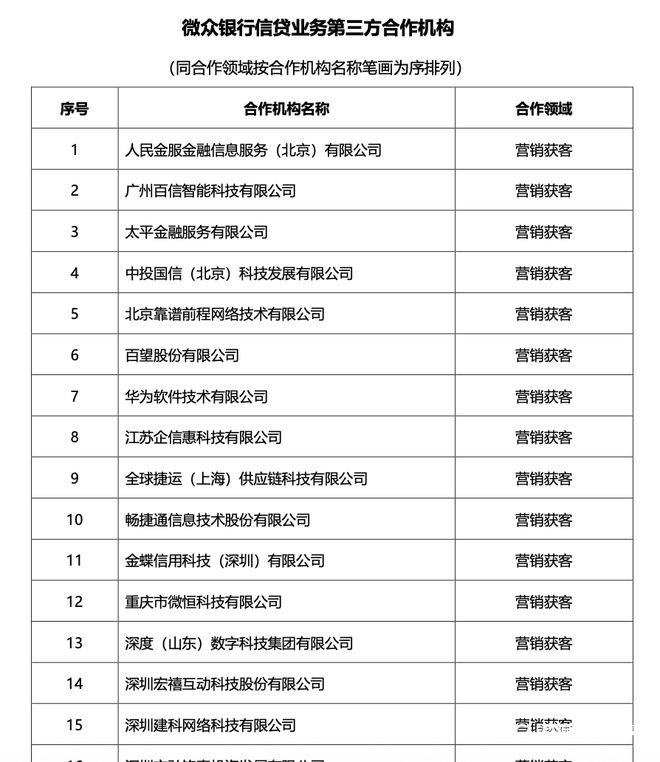 微众银行晒382家助贷合作机构