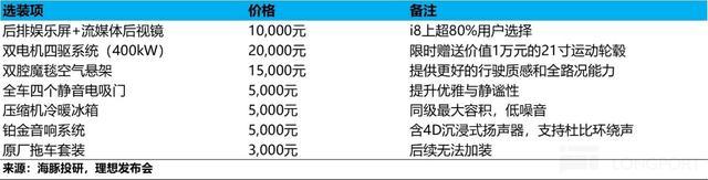 b. i6虽然高阶功能看似是选配,但当下阶段下订单,价值五千的冰箱是免费送、原高阶版本才有的双腔空悬免费送(价值1.5万)、价值五千的电吸门也是送。在三送的基础上,再现金免费1万块钱(这一万块钱相当于加配一个后排大彩电的价值)。