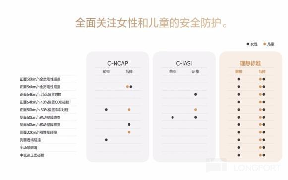 a.乘员保护:关注女性与儿童等不同身材的乘客,其内部安全标准覆盖了比行业标准假人更广的身高范围,进行了针对性的防护优化。