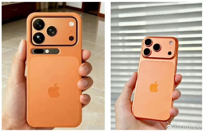 乍一看,简直和苹果的iPhone 17 Pro Max一模一样,特别是橙色版本,吸睛度十足。有网友甚至直言,“这都不是像不像的问题了,简直就是一模一样的”。
