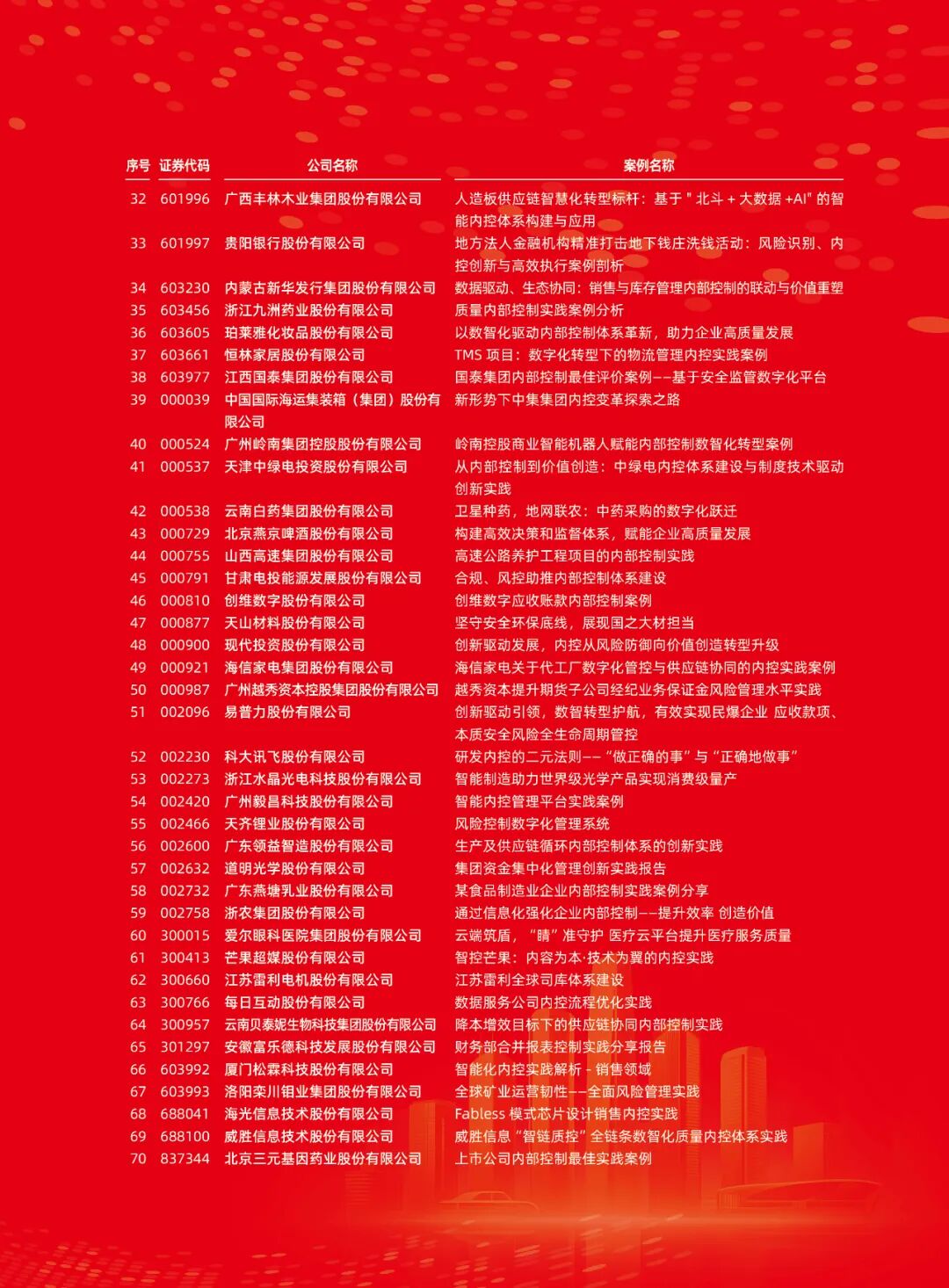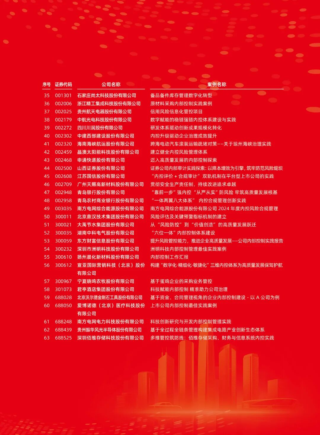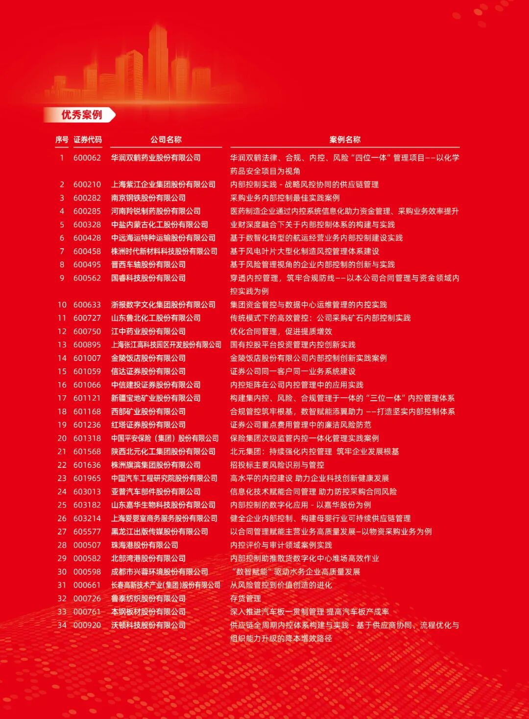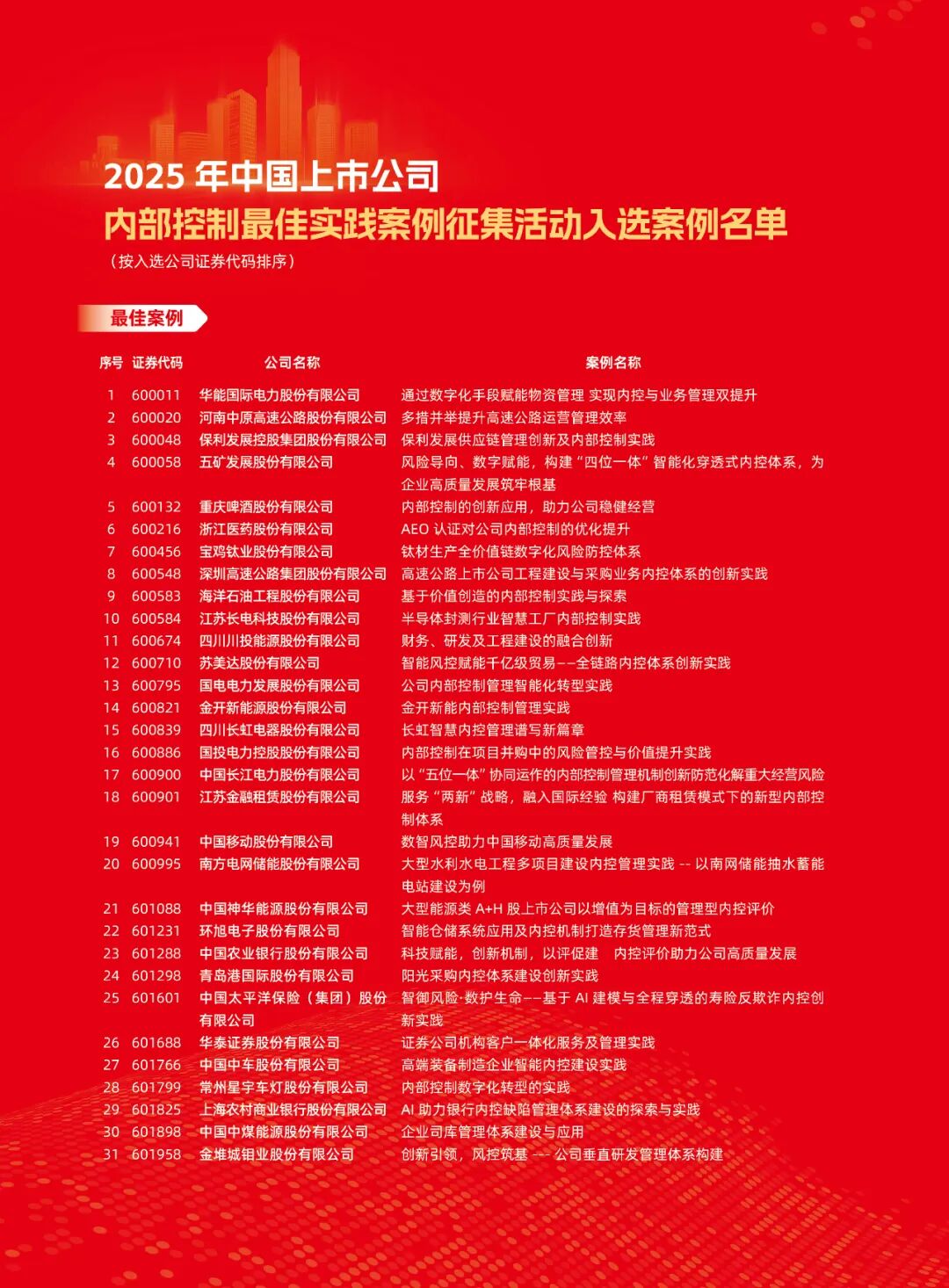2025年中国上市公司内部控制最佳实践案例征集活动入选案例名单