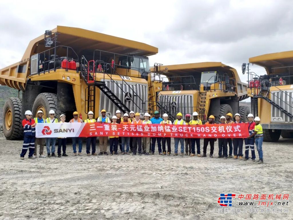 近日,三一和加纳GMC(隶属天元锰业集团)举行SET150S大吨位电动轮交机仪式。天元锰业集团副总裁徐立斌、加纳GMC矿长Ampong、三一重装海外营销公司总经理邓文旭、三一尼日利亚国区董事长胡雪松、三一重装尼日利亚项目部总经理金钊、三一重装大客户经理朱炎等出席交机仪式。