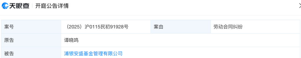 据悉,此次涉讼的是浦银安盛基金,而起诉的一位名叫谭X鸣的人。相关资料信息显示,他曾在该公司负责华南的市场业务。