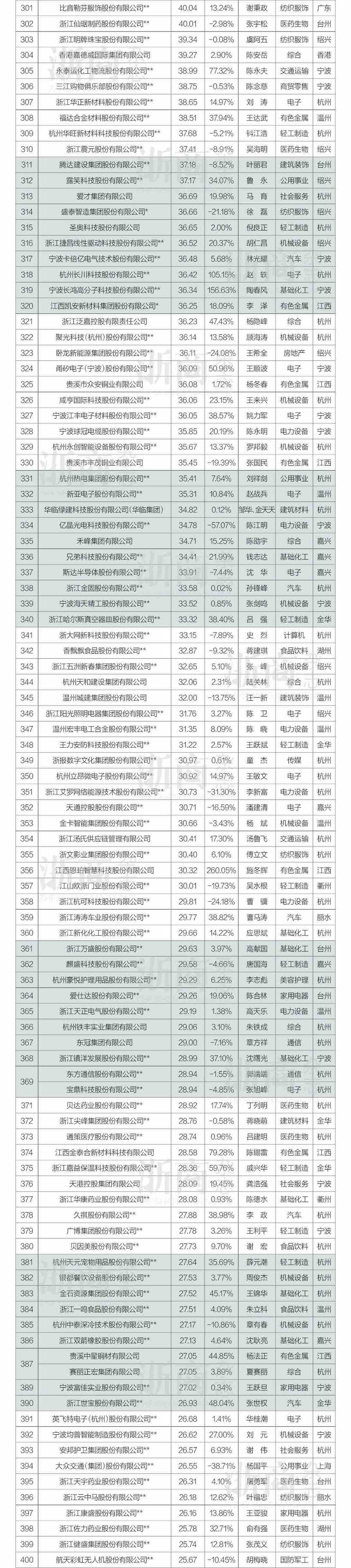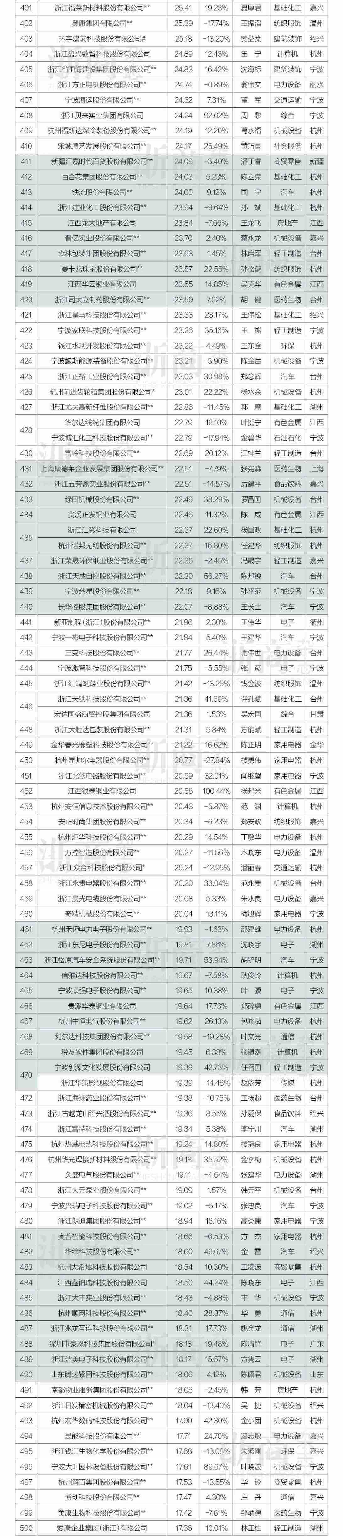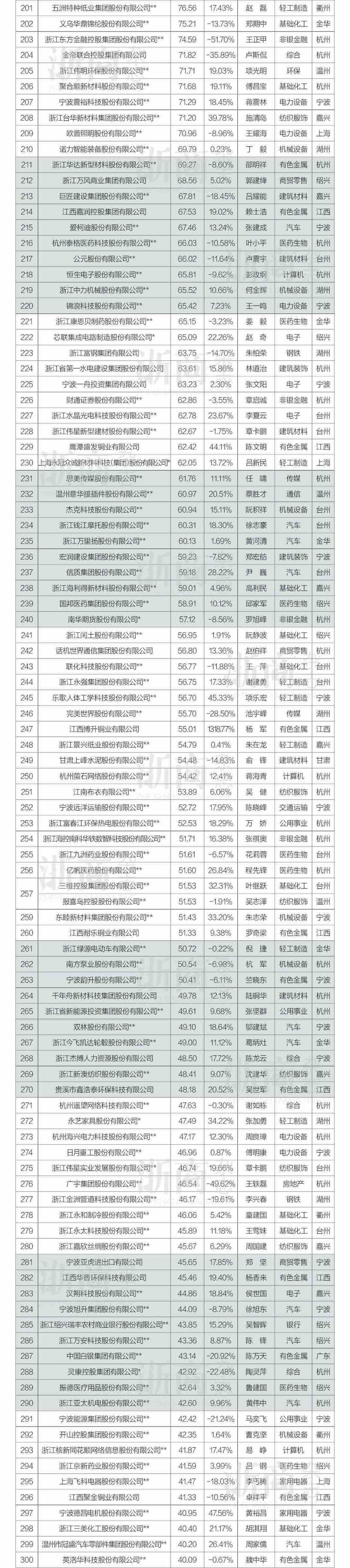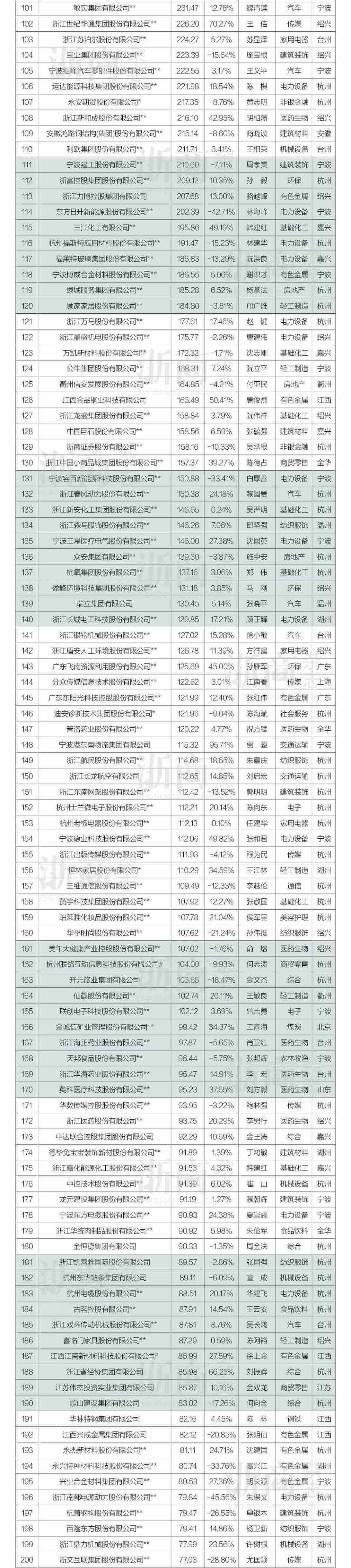 在排名前100位的浙企中,包括上述3家在内,共有18家宁波企业榜上有名,分别是奥克斯集团(第33位)、富邦控股(第34位)、宁波开投(第42位)、宁波银行(第48位)、均胜电子(第54位)、太平鸟集团(第57位)、韵达控股(第59位)、舜宇光学(第78位)、博洋控股(第87位)、力勤资源(第89位)、宁波舟山港股份有限公司(第91位)、申洲国际(第92位)、拓普集团(第95位)、宁波华翔(第96位)、荣安地产(第99位)。