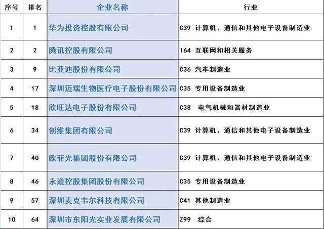 深圳27家民企上榜“民营企业研发投入500家”榜单29家民企上榜“民营企业发明专利500家”榜单
