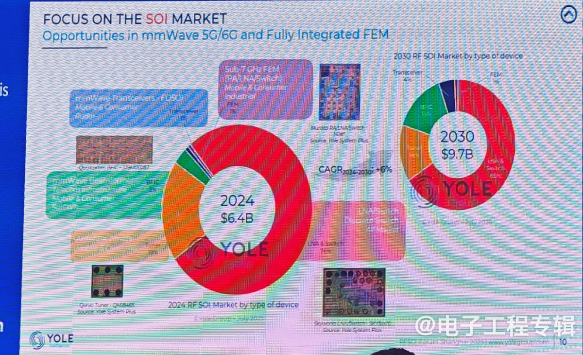 展望未来,黄茂原对RF-SOI技术在射频市场中的发展前景充满信心。他表示,随着5G/6G通信、物联网、汽车电子等领域的快速发展,射频前端器件的市场需求将持续增长。而RF-SOI技术以其独特的优势,将在这些领域中发挥更加重要的作用。