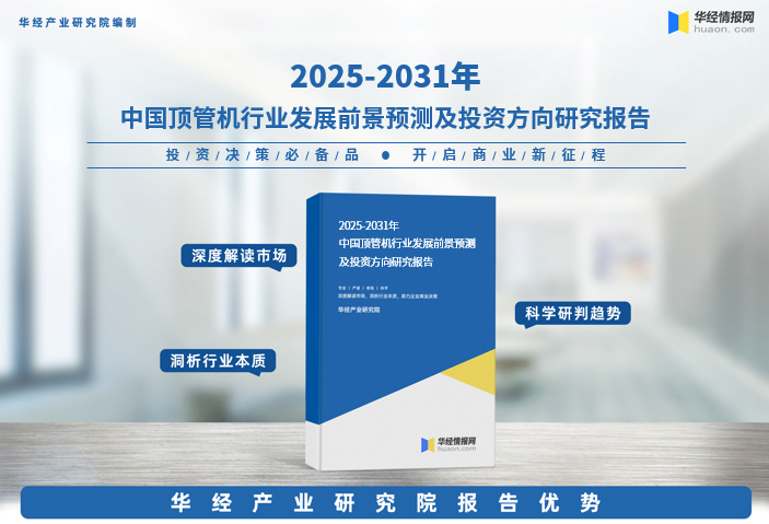 华经产业研究院为助力企业、科研、投资机构等单位了解顶管机行业发展态势及未来趋势,特重磅推出《2025-2031年中国顶管机行业发展前景预测及投资方向研究报告》,本报告由华经产业研究院研究团队对顶管机行业进行多年跟踪研究,使用桌面研究与定量调查、定性分析相结合的方式,全面解读顶管机行业市场,深度挖掘行业潜在商机;科学运用研究模型,多维度对行业投资风险进行评估后精心研究编制。
