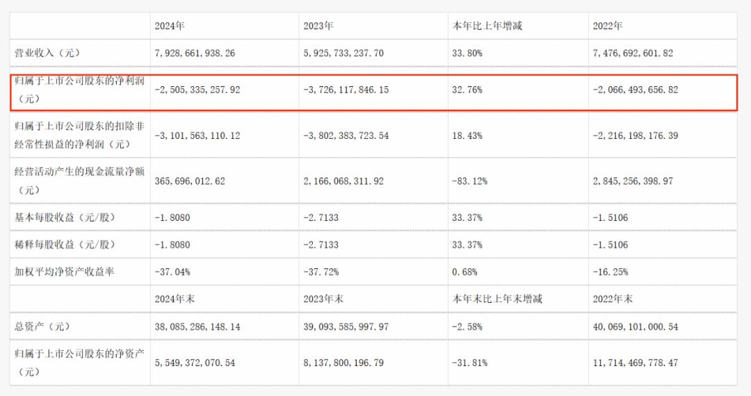 以维信诺为例,其主营业务是AMOLED新型显示产品的研发、生产、销售和技术服务,目前的市占率已经是全国第二,仅次于京东方。但在AMOLED赛道上,公司已经连续四年巨额亏损。2021年至2024年间,公司归母净利润分别为-15.19亿元、-20.66亿元、-37.26亿元和-25.05亿元,四年来累计亏损近百亿元。