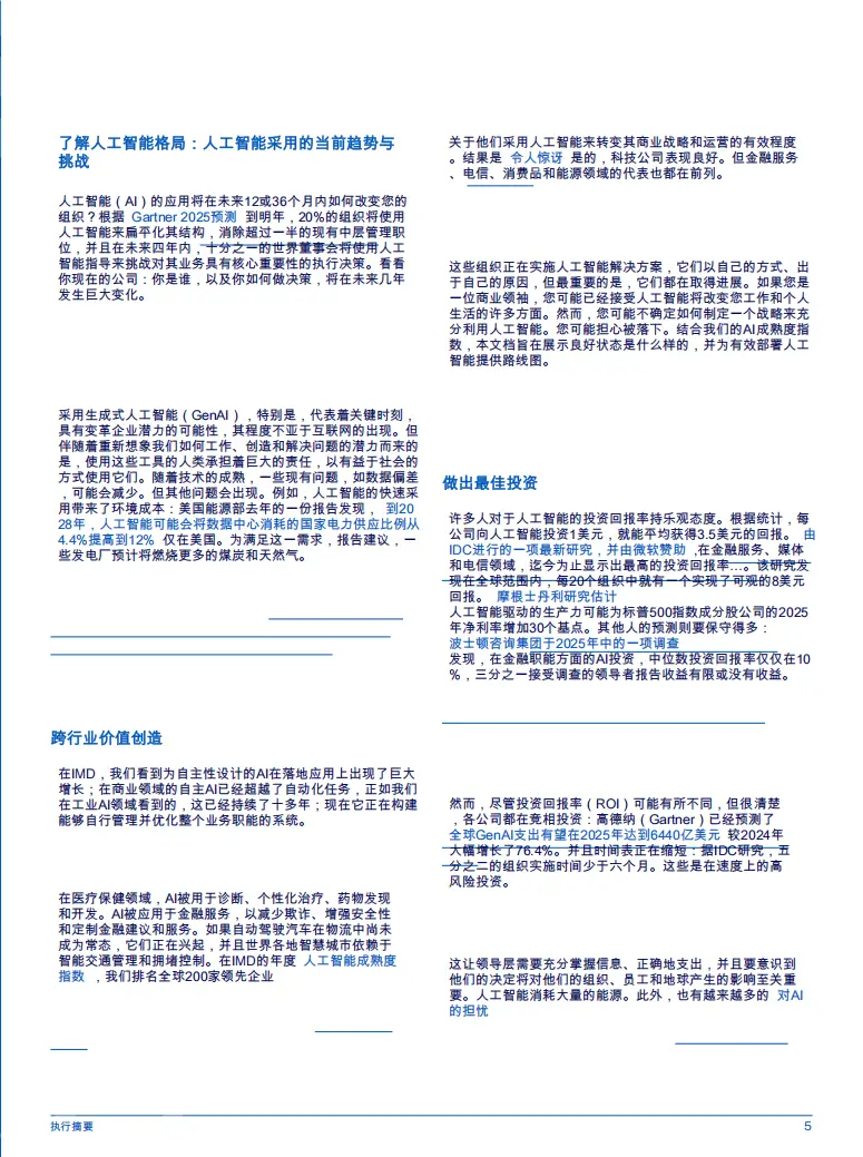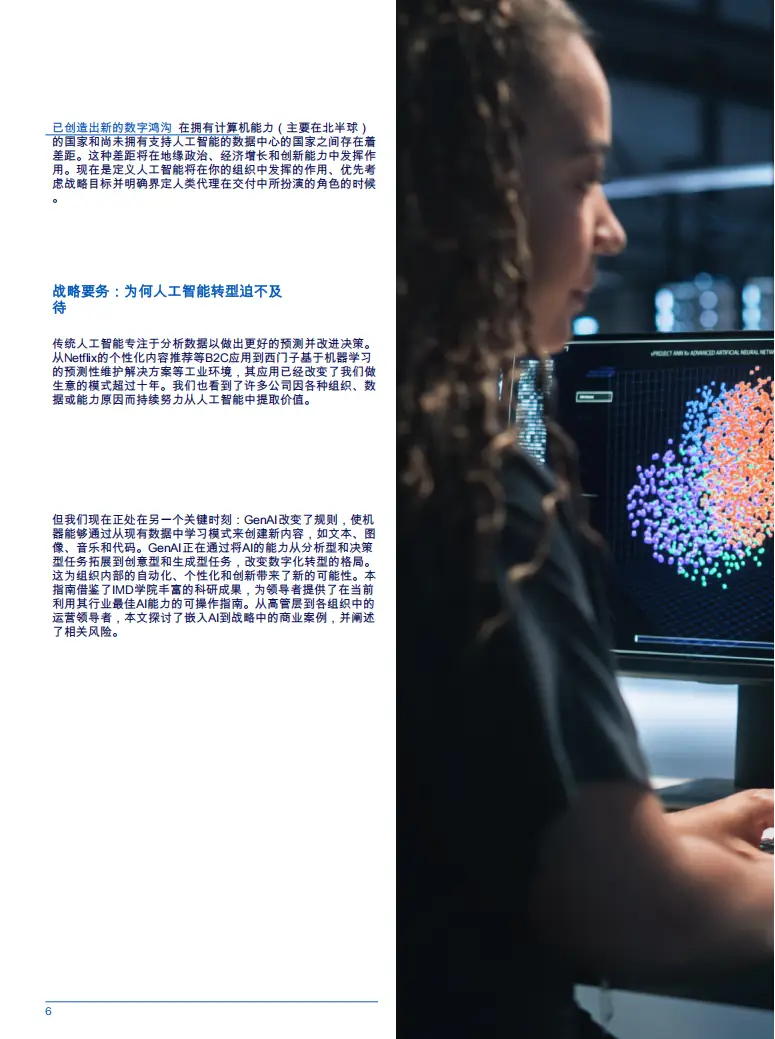 在数字化浪潮席卷全球的当下,人工智能(AI)尤其是生成式AI(GenAI)已不再是遥远的科技概念,而是深刻重塑企业运营、行业格局乃至工作方式的核心力量。IMD最新发布的《以人工智能获胜:业务领导者从战略到执行的AI指南》,为商业领袖揭开了AI落地的神秘面纱,从技术趋势、行业实践到风险管控,勾勒出一套可落地的全景蓝图。