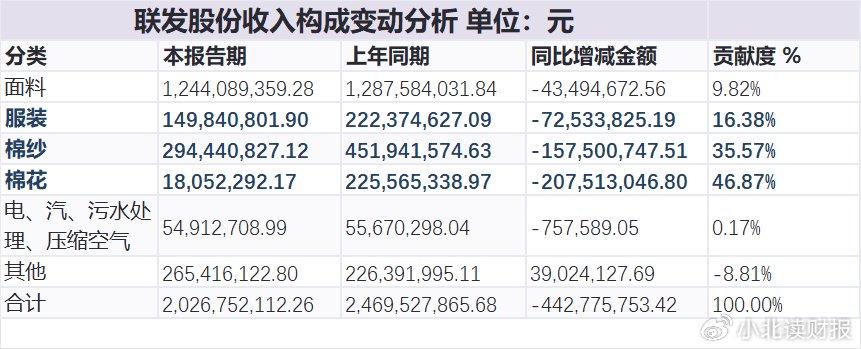 这是联发股份棉花、棉纱和服装业务收入全部下滑的行业大背景。