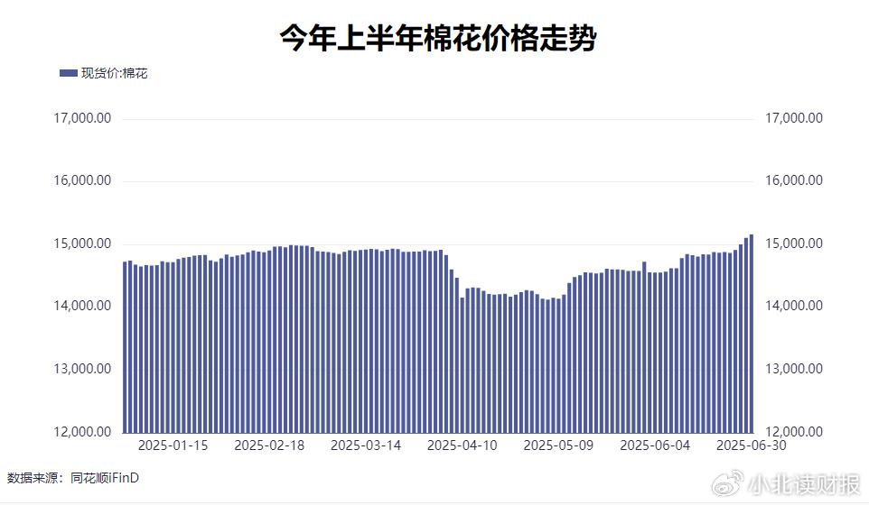 但是棉花是大宗商品,价格变动幅度大;整体来看,今年上半年棉花价格呈现出V型走势。