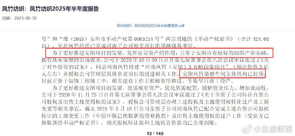 结果,凤竹纺织的半年报里提到,公司在河南安阳的染整车间主体结构已经封顶,而且安阳有较好的纺织产业基础。