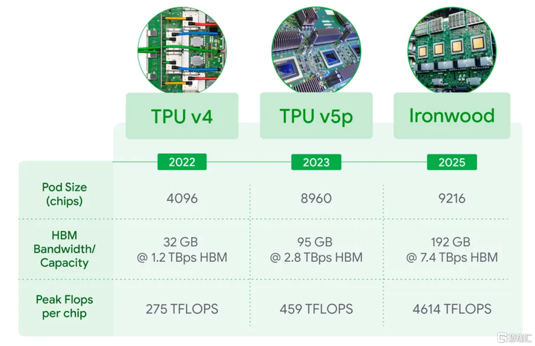 今年4月份,谷歌在Google Cloud Next 25大会上推出了其首款Google TPU推理芯片Ironwood,这也是谷歌的第七代张量处理单元(TPU)。