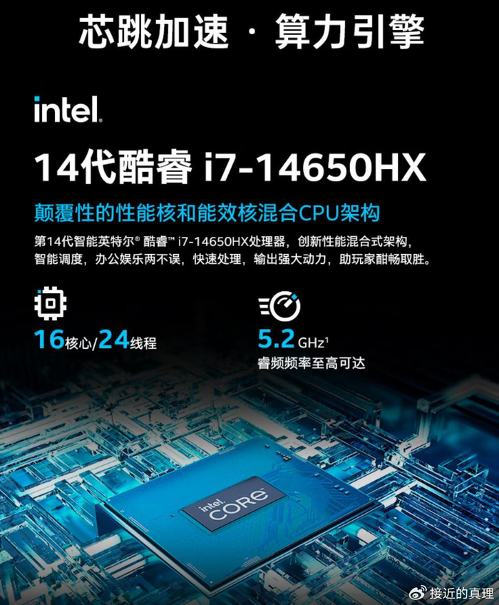 两款机型的核心动力均源自 i7-14650HX 处理器,16 核心 24 线程的硬件规格搭配 5.2GHz 的最大睿频,无论是多任务办公、代码编译等生产力场景,还是大型游戏中的复杂场景渲染,都能提供稳定算力输出。作为移动端高性能处理器的代表型号,其架构优化让能效比进一步提升,为整机在性能释放与续航平衡间找到了最佳支点。