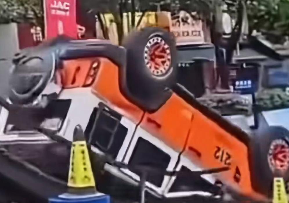 近日,有网友在社交平台发布视频,一辆车身标注有“212”字样、白橙双色涂装的汽车在爬坡过程中发生翻车。视频显示,该车前车盖明显被压扁,前车窗出现碎裂迹象。