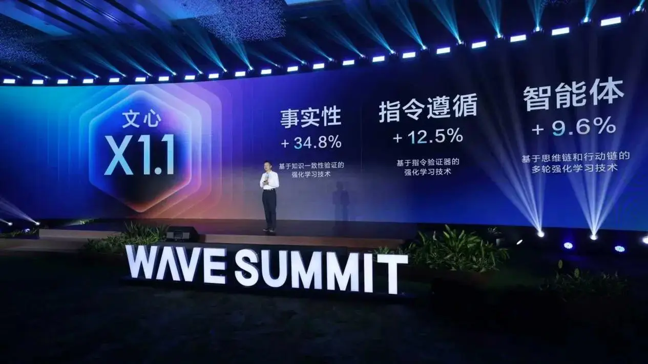9月9日,WAVE SUMMIT深度学习开发者大会2025在京举行,文心大模型X1.1一亮相就惊艳全场——事实性能力提升34.8%、指令遵循提升12.5%、智能体能力提升9.6%,而这背后,是文心与飞桨的联合优化。