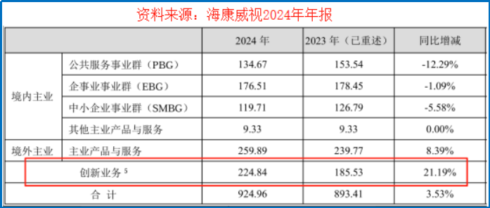 2024年,海康威视创新业务营收突破224亿元,同比增速超过21%,远高于传统业务。