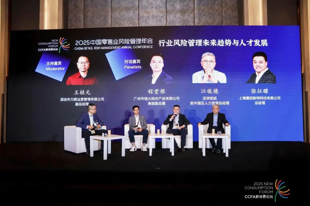 在2025年零售业风险管理年会上,深圳市万辉运营管理有限公司副总经理王桂元作为主持嘉宾,与对话嘉宾:广州市钱大妈农产品有限公司高级副总裁程堂根,亚洲浆纸前中国区人力资源总经理江俊德,上海撒因斯特科技有限公司总经理张征耀就“行业风险管理未来趋势与人才发展”这一话题展开深入讨论。