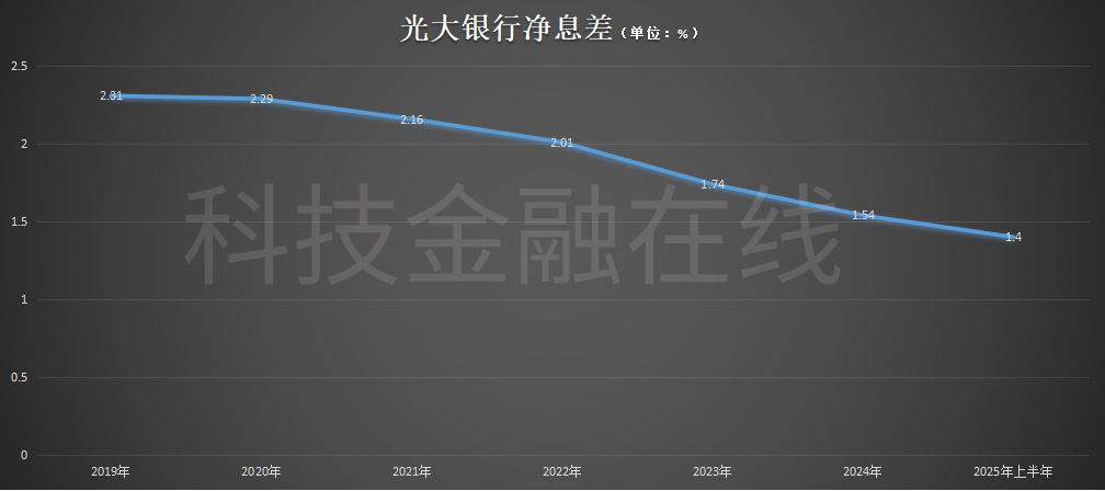 相比于2024年底,光大银行净息差下跌了0.14个百分点,在股份制银行中,跌幅最大。