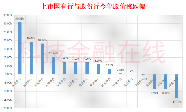 在A股上市的六大国有行和9家股份行中,跌幅并列第二名。