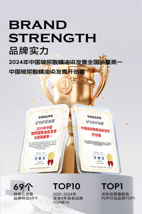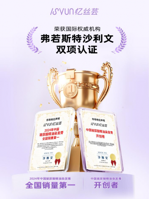 作为中国玻尿酸精油染发品类的开创者,忆丝芸此次获得京东超市权威认可并非偶然。早在之前,忆丝芸就获得了全球著名增长咨询公司沙利文的权威认证,被确认为“中国玻尿酸精油染发膏开创者”,同时认证忆丝芸在2024年夺得“中国玻尿酸精油染发膏全国销量第一”的卓越成绩。