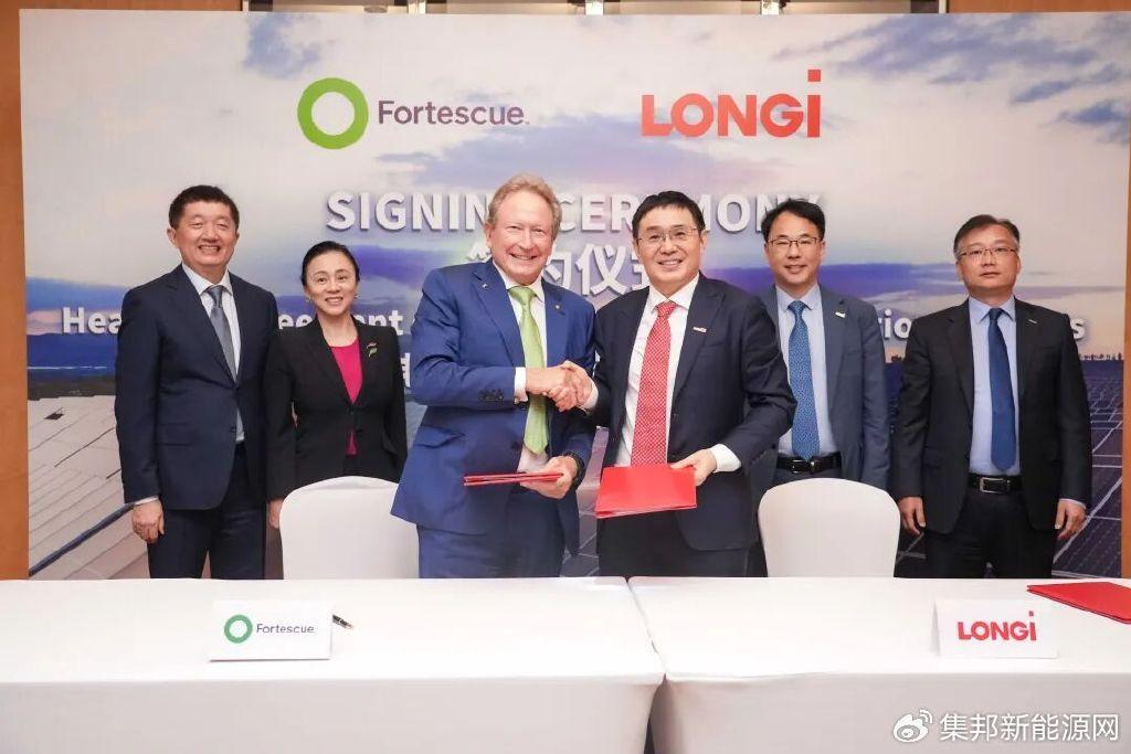 近日,隆基绿能与澳大利亚福德士河集团(Fortescue)正式签署合作备忘录,隆基绿能董事长钟宝申与Fortescue执行主席Andrew Forrest博士共同出席签约仪式。