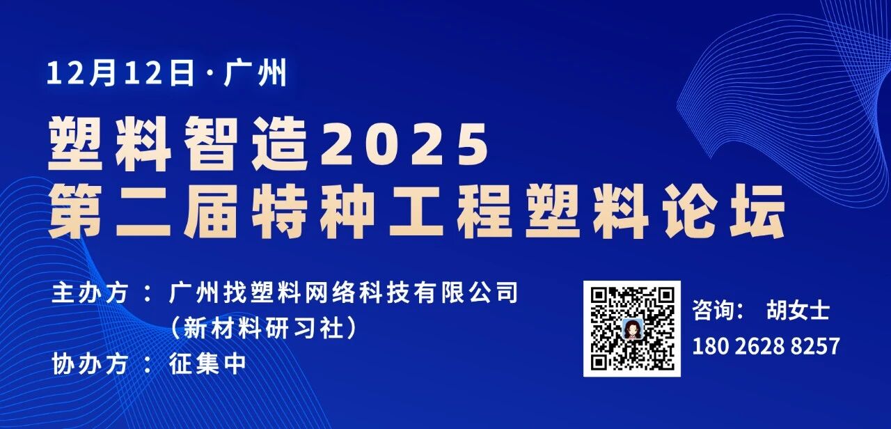 为探讨特种工程塑料的最新应用,搭建产业链上下游沟通平台,“塑料智造2025——第二届特种工程塑料论坛”将于2025年12月12日在广州举办,大会汇聚科研院所专家、企业领袖及下游应用端负责人,通过专题报告、技术对接等形式搭建“产研学用”平台,助力产业突破瓶颈,为高端制造提供材料支撑。欢迎参会参展!