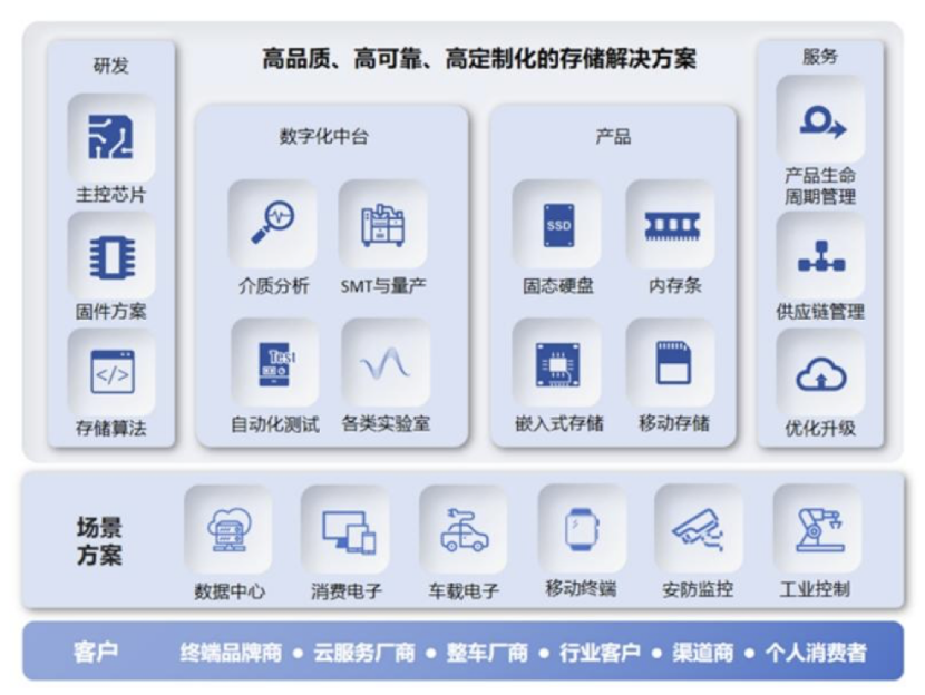 在此基础上,公司持续深化“从底层技术到终端场景”的全链路布局,以闪存主控芯片自主研发设计和存储解决方案开发为核心,推动业务模式从单纯产品销售逐步向场景化、定制化解决方案转型升级,使存储模组成为解决方案落地的重要载体,为客户提供一站式、全链路存储解决方案服务。