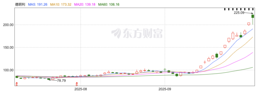 2、受益于阿里巴巴 AI 芯片发布以及存储芯片价格触底反弹,德明利股价在一个月时间涨幅超过了 140%,市值暴增 280 亿元;
