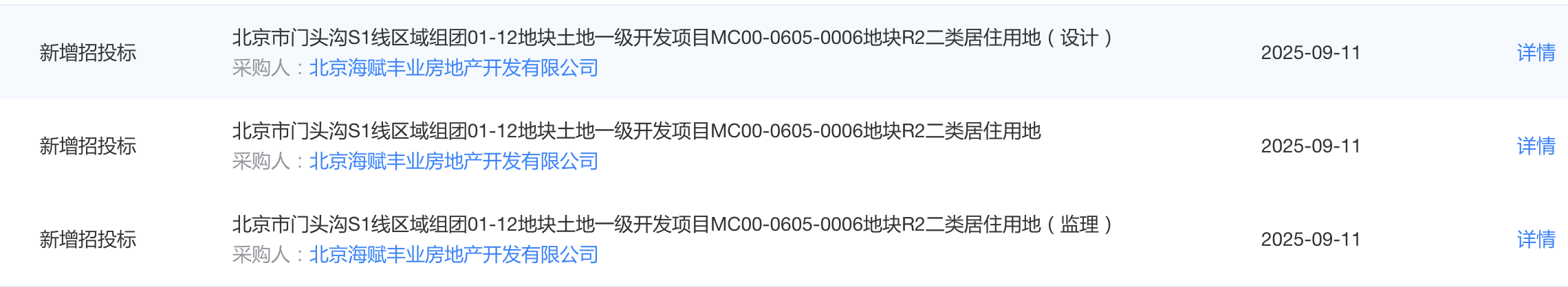 早在拿地前的9月11日,电建地产旗下北京海赋丰业房地产开发有限公司就针对门头沟0006地块发出了全套招标计划。