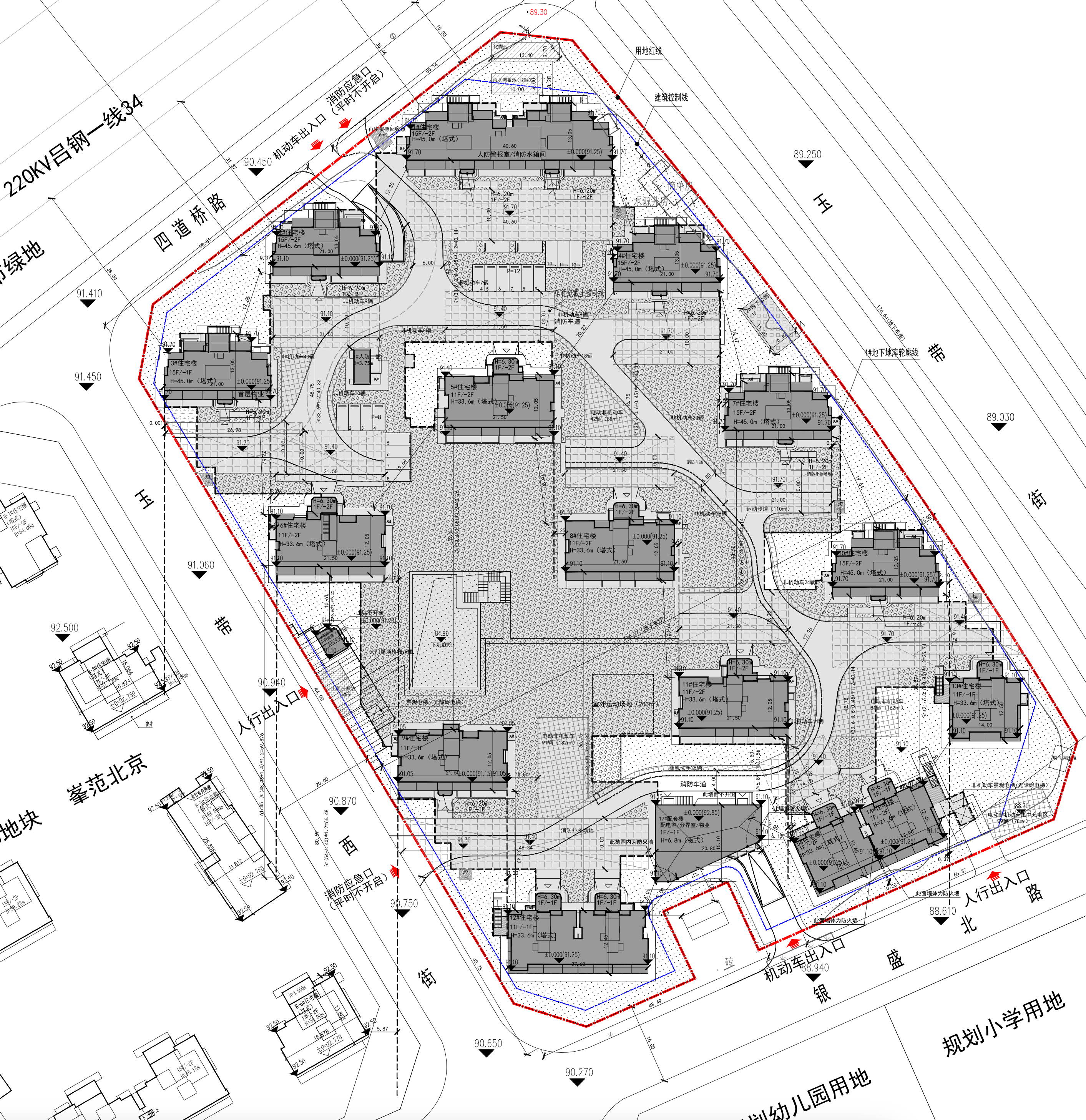 住宅建面40311.73㎡,规划15栋塔式住宅楼,共421户。