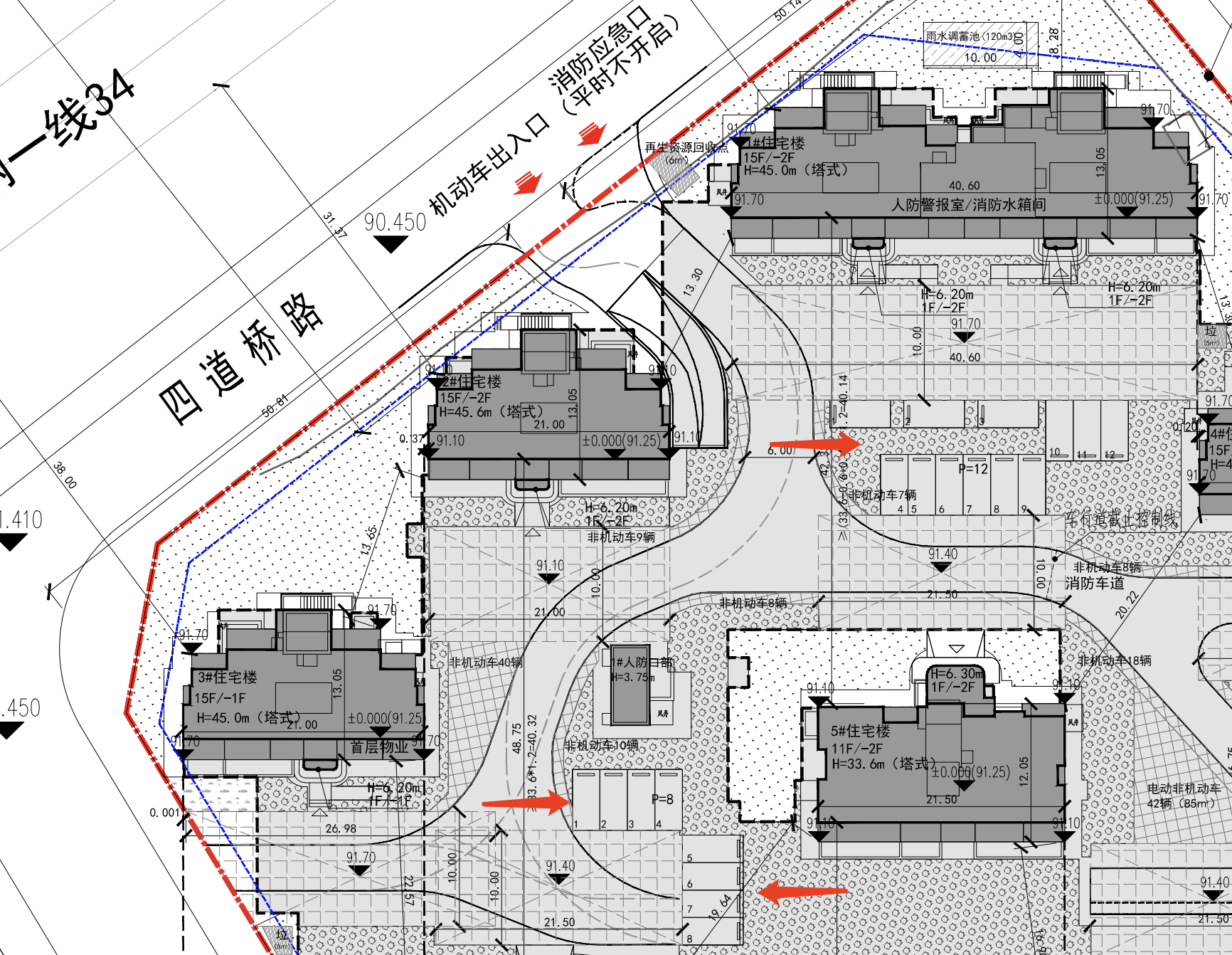小区南北两侧各有一处机动车出入口。