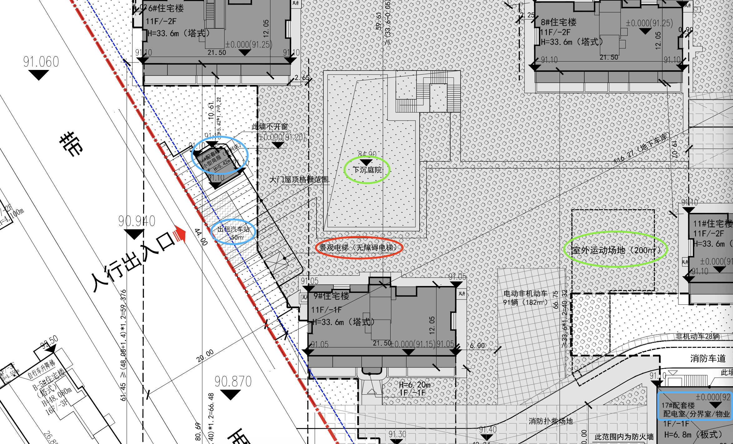 小区东南侧还有一处人行出入口,方便去南边的小学和幼儿园。