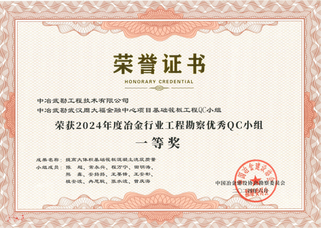 2024年度冶金行业工程勘察优秀QC小组一等奖