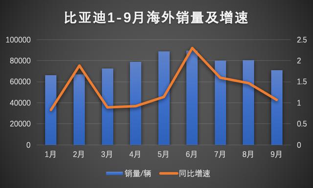 放眼全球,比亚迪依然是新能源汽车的扛把子选手,但从增速来看,今年下半年开始,增速突然降低,其中7月增速为0.6%,8月增速为0.1%,基本仅能够与去年持平,而9月则同比下滑5.5%。