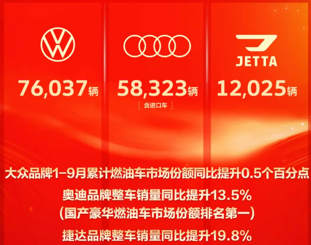 不过中国一汽发布的数据显示,奥迪品牌前三季度整车销量同比提升13.5%,为国产豪华燃油车市场份额排名第一。
