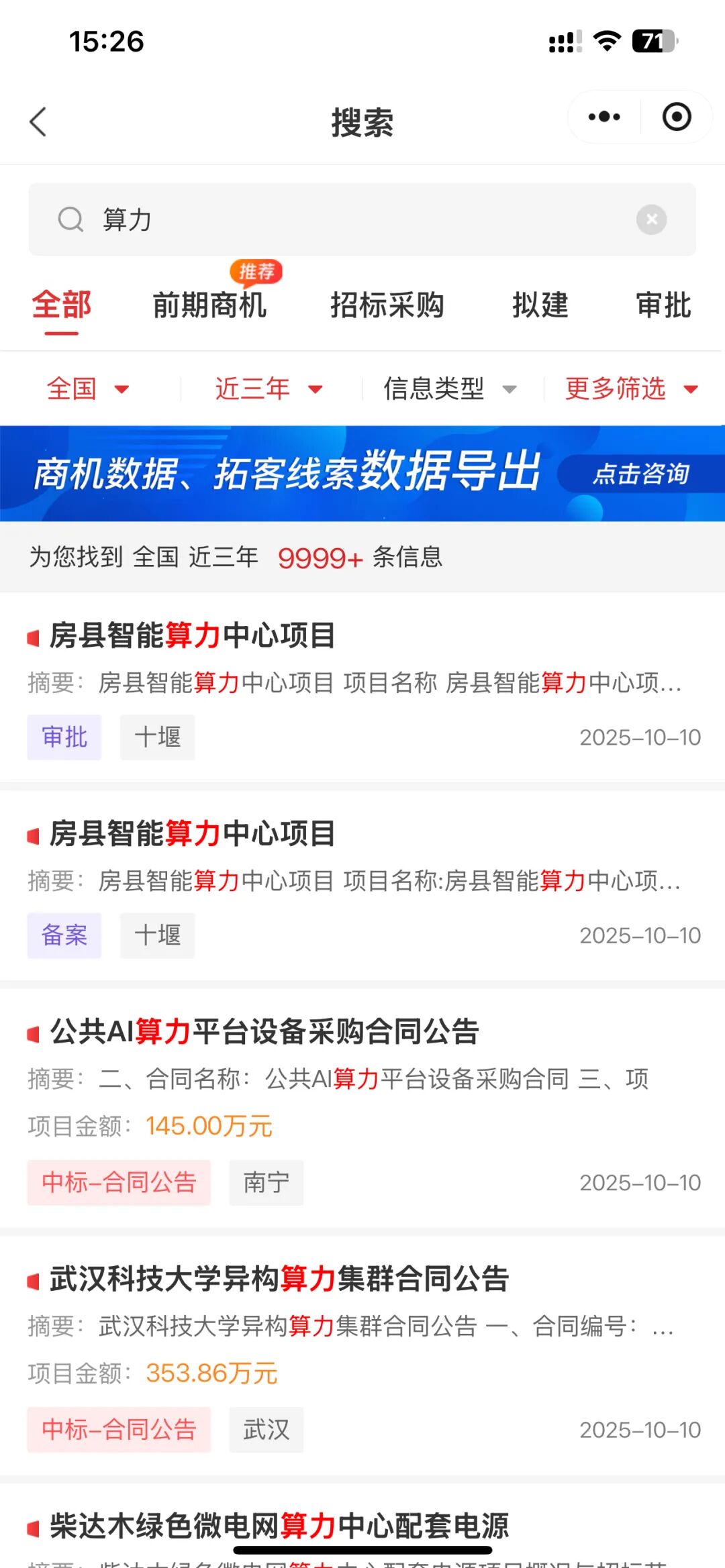 2025 年 10 月 10 日发布中标候选人公示,浙江云尖智源科技有限公司173995576 元。