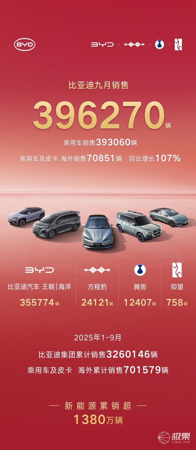 俗话说,销量是市场认可度最直观的体现,比亚迪在这一维度的表现堪称“断层式领先”。根据公开数据显示,2025 年前三季度,比亚迪整体销量达到 274.78 万辆,同比增幅高达 32.1%,在全球汽车市场增速放缓的大背景下,这一数据尤为亮眼。